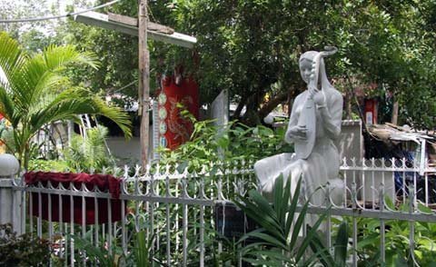 | Một bức phù điêu tạc một nghệ sỹ đang chơi đàn Tam thập lục được dựng ở giữa những hàng bia mộ. Dưới bức phù điêu có ghi dòng chữ: Đài kỷ niệm Nghĩa trang nghệ sỹ. Dường như, nó là một chút an ủi những người đã mất, những nghệ sỹ đã mất |
