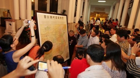 Nhiều người xem tấm bản đồ của Trung Quốc in năm 1904 không có Hoàng Sa - Trường Sa của Việt Nam. Ảnh Tuổi Trẻ.