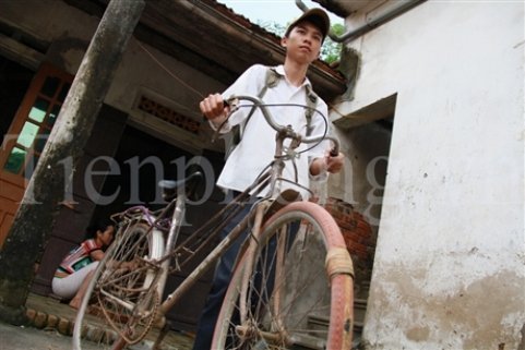 | Thủ khoa Lê Đức Duẩn và chiếc xe đạp. Ảnh: Trường Phong/ Báo Tiền Phong |