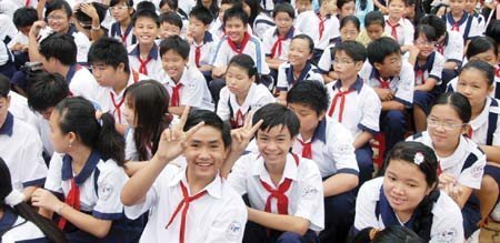 | Nét mặt tươi cười của các học sinh trong ngày khai giảng. Ảnh: Minh Đức |
