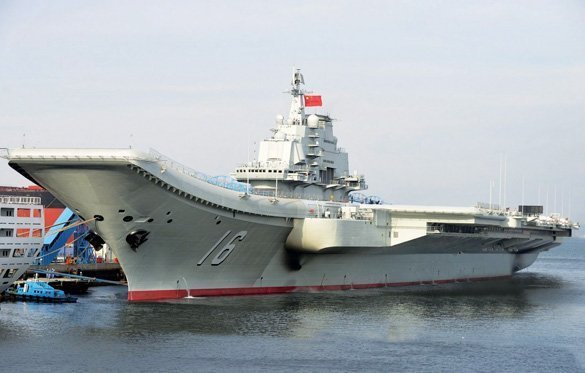 10. Hàng không mẫu hạm đầu tiên của Trung Quốc dựa theo mô hình Varyag do Liên bang Xô viết đóng vào thập niên 1980, sau đó được chuyển giao cho Ukraina. Vào năm 1998 Trung Quốc mua lại tàu này của Ukraina, khi ấy chỉ còn vỏ tàu, không có cả động cơ lẫn thiết bị điện tử nào. Thoạt đầu Trung Quốc cho biết sẽ cải biến thành một sòng bạc nổi, nhưng sau đó tàu được đưa đến Liêu Ninh để tân trang nhằm thực hiện khao khát của Trung Quốc là sở hữu một tàu sân bay đúng nghĩa. Tàu được đặt tên Liêu Ninh và sau một thời gian chạy thử đã được chính thức đưa vào hoạt động cách đây hơn một tuần. Với chiều dài 300m, vận tốc tối đa 56km/g, tàu sân bay của Trung Quốc chở được 50 máy bay gồm máy bay chiến đấu và trực thăng.