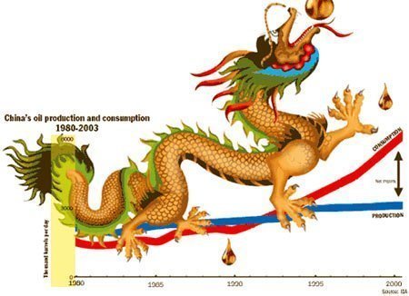 Đầu tư vào tài sản cố định là một dạng hoạt động kinh tế đòi hỏi một lượng năng lượng khổng lồ, đặc biệt là tại một nền kinh tế vẫn còn sử dụng năng lượng một cách cực kỳ chưa hiệu quả so với các nước công nghiệp phương Tây. Hãy xem mức tiêu thụ dầu của Trung Quốc trong hai thập kỷ qua là rõ. Từ năm 1993-2010, tiêu thụ dầu mỏ tăng khoảng 140 triệu tấn, đạt 440 triệu tấn.