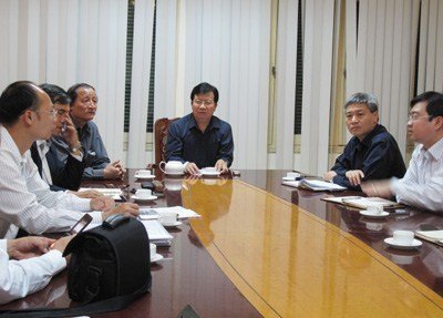 | Bộ trưởng Xây dựng Trịnh Đình Dũng chủ trì cuộc họp khẩn chiều 15/11 sau trận động đất 4,7 độ richter vừa xảy ra ở Bắc Trà My. Ảnh: Dân trí |