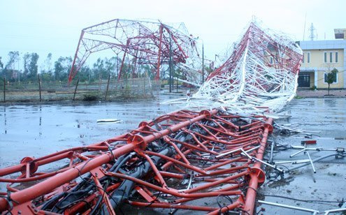 | Tháp truyền hình Nam Định đổ sập trong bão Sơn Tinh. Ảnh: Trọng Nghiệp/ VNE |