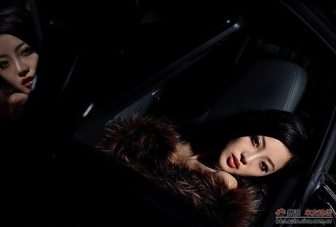 Cô người mẫu lạnh lùng và bí ẩn nhưng vẫn đầy gợi cảm khi tạo dáng bên trong chiếc xế hộp.