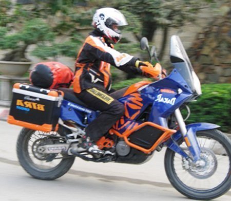Dẫn đầu đoàn xe Caravan là chiếc Adventure 990 Dakar. Chiếc camera được gắn trên mũ bảo hiểm