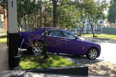 | Chiếc Rolls-Royce Ghost của Cường đô la nhận màu tím khá độc |