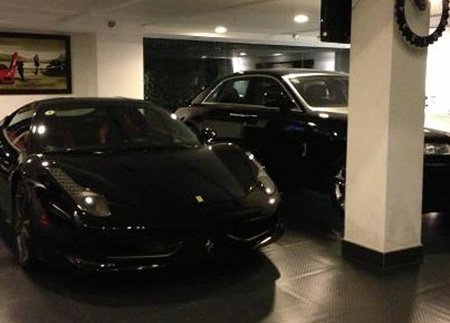 đen khi đứng cạnh siêu xe 458 Italia trong gara.