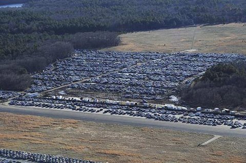 Có tới 250.500 chiếc xe bị hư hỏng sau siêu bão Sandy cuối năm ngoái hiện đang xếp hàng đợi tu sửa, trong đó có nhiều xe không thể khôi phục.