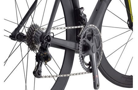 | Điểm nhấn của mẫu xe đạp cao cấp này là phần tay lái và yên xe bọc da lộn, dùng cho ghế của siêu xe Lamborghini Aventador LP-700. |