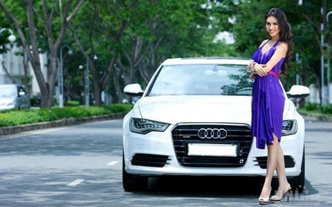Á hậu Hoàng My và chiếc Sedan A6 phiên bản 2012 trị giá gần 3 tỷ đồng với thiết kế thời trang, sang trọng.