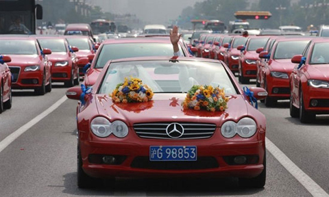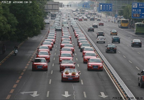 Hôm 10/7, đoàn xe đón dâu của một chú rể người Trung Quốc đã gây xôn xao đại lộ Trường An thuộc thủ đô Bắc Kinh. Nguyên nhân nằm ở sự xuất hiện của 35 chiếc Audi A4 đỏ rực cả một góc phố. Được biết, đây là món quà mà các hội viên trong câu lạc bộ Audi A4 Cheyou gửi tặng đôi uyên ương.