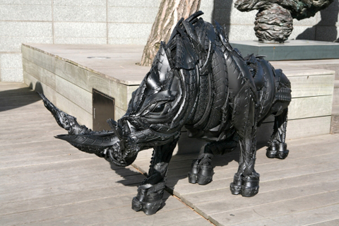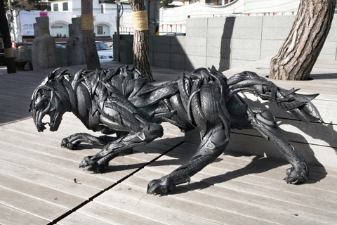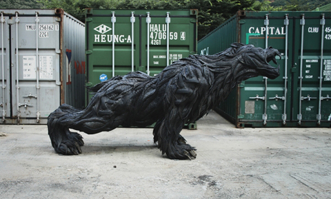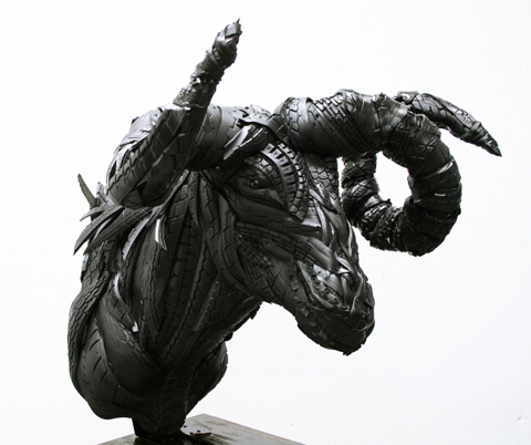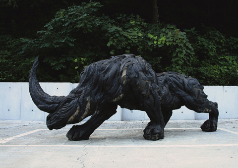 Sử dụng chất liệu lốp cao su để tạo ra những tác phẩm điêu khắc sống động quả là thách thức lớn, đặc biệt để làm sao cho chúng không bị thô cứng mà vẫn biểu hiện được cảm xúc. Về phương diện này, nghệ sỹ Yong Ho, đến từ Hàn Quốc, đã thành công khi giới thiệu bộ sưu tập “quái thú” của mình.