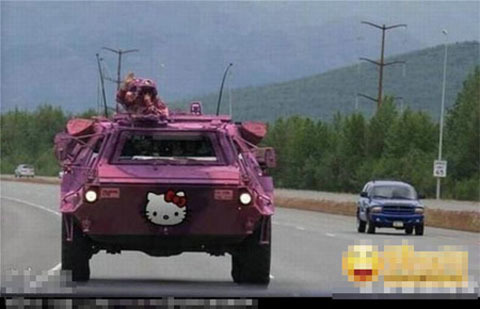 Nhắc tới thương hiệu HelloKitty, hẳn nhiều người liên tưởng tới những sản phẩm dễ thương, dịu dàng, mang sắc màu cổ tích dành cho phái nữ. Nhưng chiếc xe tăng sơn hồng với biểu tượng HelloKitty ngay đầu xe khiến nhiều người thán phục tài sáng tạo của những nhà sản xuất.