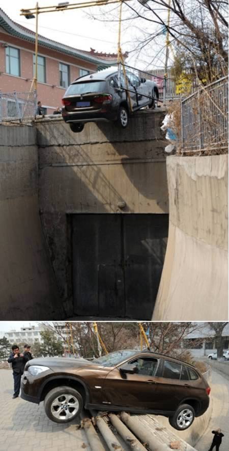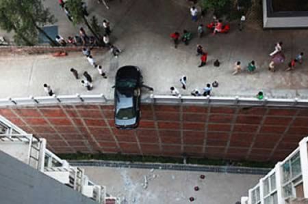 Cận kề cái chết ngay ở nhà đỗ xe còn lạ lùng hơn nữa. Một cặp đôi người Trung Quốc thật may mắn thoát nạn khi lái xe nhấn nhầm chân ga và chân phanh khiến cho chiếc xe lơ lửng cách mặt đất 15,2 m ở nhà đỗ xe của tỉnh Hồ Nam, Trung Quốc.