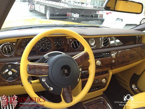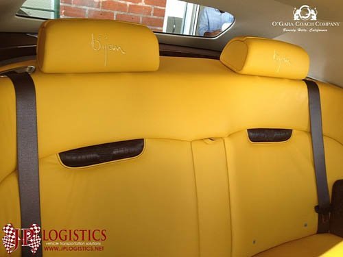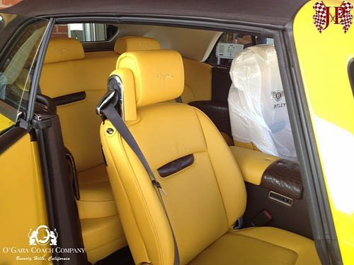 Toàn bộ nội thất của xe được bọc da cao cấp màu vàng.