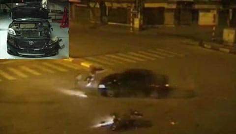 1h30 ngày 13/3, thiếu úy công an Nguyễn Hà Lâm (26 tuổi) đi xe máy vượt đèn đỏ tại ngã tư Cửa Nam đã va chạm với ôtô 4 chỗ màu đen đang chạy cắt ngang. Thiếu úy Lâm bị hất văng lên cao, cuốn vào gầm ôtô và kéo lê khoảng 60 m, còn xe máy văng xa 5-6 m. Sau đó, tài xế ôtô tiếp tục chạy theo hướng đường Lê Duẩn.