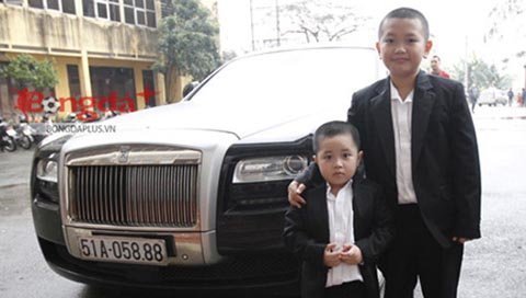 Hai thiếu công tử của bầu Thụy làm dáng bên chiếc siêu xe của cha. Một chiếc xe như thế này về đến Việt Nam, tính đủ các loại thuế lên đến cả triệu đô.