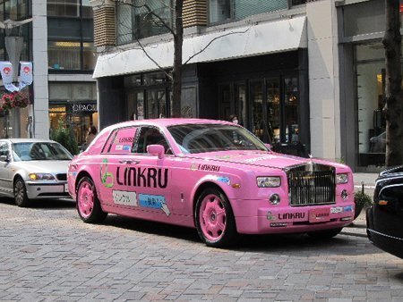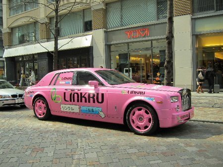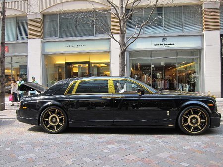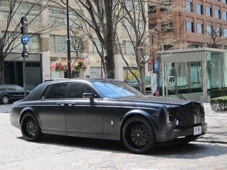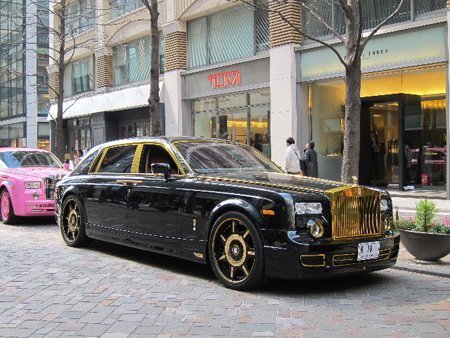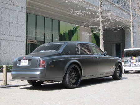 Tiếp đó là một chiếc Rolls-Royce Phantom màu đen mờ với bộ lazăng đặt hàng. Chiếc Phantom tiêu chuẩn nhưng khoác "bộ cánh" màu hồng của một công ty quảng cáo cũng nổi bật không kém.