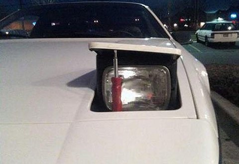 | Phải mạnh tay với chiếc đèn pha cứng đầu không chịu ngoi lên. |