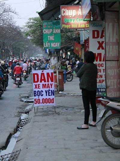 Dạo quanh 1 vòng các phố chuyên bán phụ tùng xe máy như khu vực phố Huế, Bà Triệu chúng tôi thấy hàng loạt các cửa hàng bọc yên xe được mọc lên một cách thức thời. Tại phố Đại La, một loạt các cửa hàng bọc yên xe với "giá rẻ bất ngờ - 50.000 đồng" mọc lên nhan nhản khiến người tiêu dùng không biết đâu mà lần.