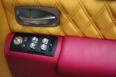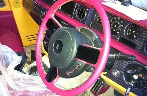 | Những nút bấm trong xe mạ crom đều được thay thế bằng vàng thật. Với ba tháng để hoàn thiện nội thất bắt mắt với hai tông màu chủ đạo vàng hồng, chiếc xe trông hoàn hảo và cực kỳ rực rỡ. |