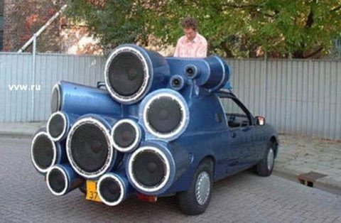 | Xế bốn bánh với hàng loạt loa công suất. |