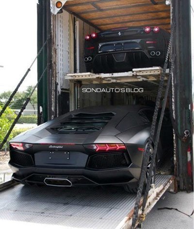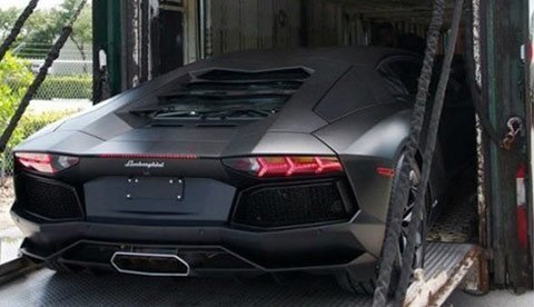 Chiếc Lamborghini Aventador Lp700-4 cùng chiếc Ferrari F430 đang được gỡ ra khỏi công ten nơ. |