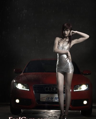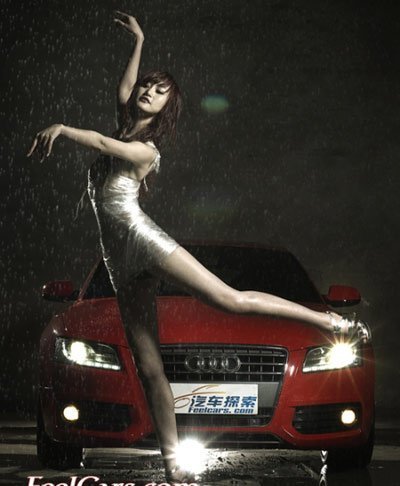 Bên chiếc Audi A5 sang trọng, cô nàng có những tạo hình thật gợi cảm.