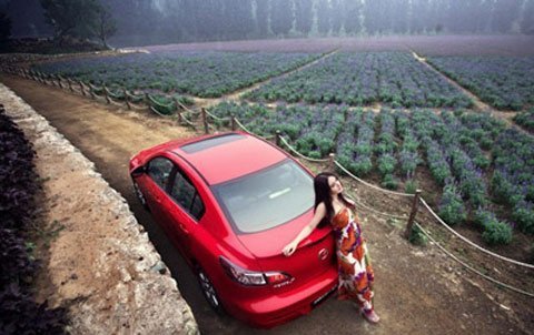 Bên cánh đồng hoa oải hương, người đẹp dịu dàng, gợi cảm cùng xế hộp