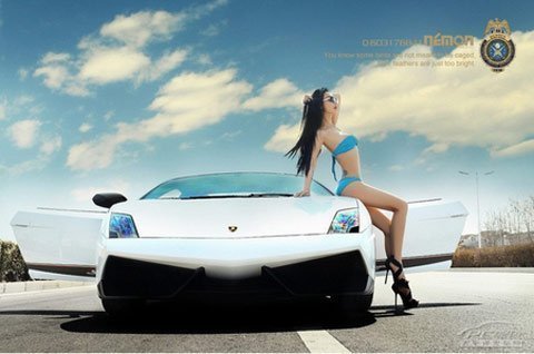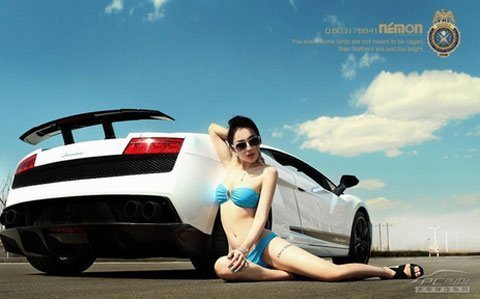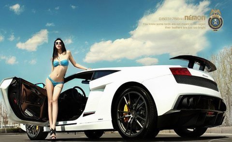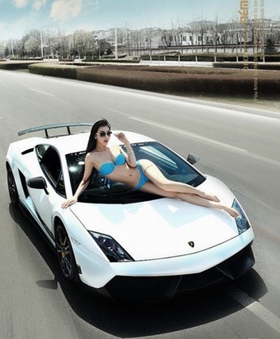 Chiếc Lamborghini màu trắng tuyệt đẹp cũng không thể thu hút sự tập trung của các đấng mày râu khi có sự xuất hiện của người đẹp mặc áo tắm bên cạnh.