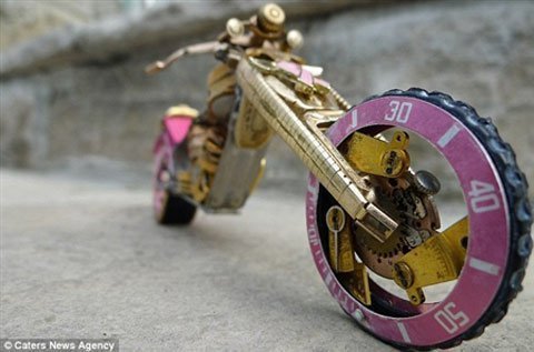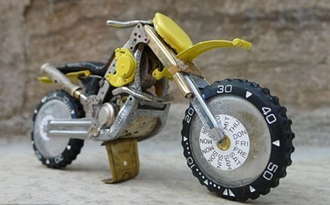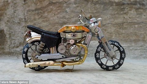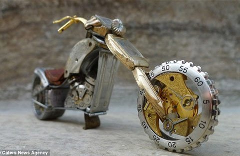 Những chiếc đồng hồ bị hỏng nay trở thành vật liệu quý báu cho người nghệ sĩ tại Toronto, Canada chế tạo thành những chiếc xe máy tý hon độc đáo.