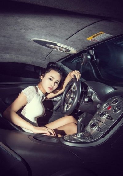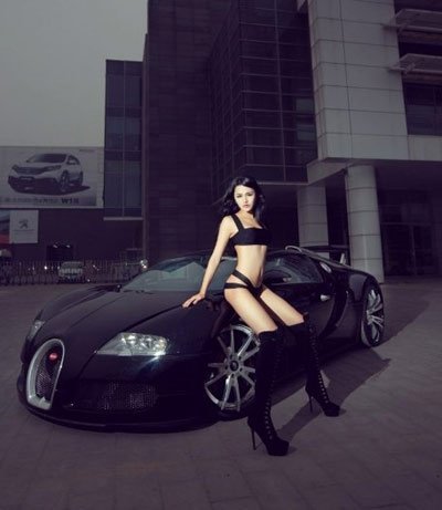 Cô người mẫu tạo dáng đầy gợi cảm bên chiếc siêu xe thể thao triệu đô Bugati Veyron.