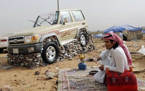 Có lẽ khi đã chán với những màn drift phá xe trên đường phố, giờ đây các đại gia Ả Rập đã có một thú chơi mới là xếp đầy gạch đá bên dưới gầm xe ô tô để làm...kiểng.