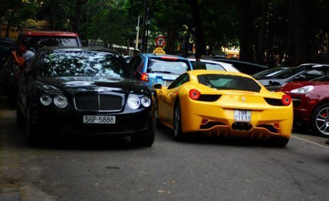 Và chiếc Bentley Continental Flying Spur của ông bầu Nguyễn Đức Kiên tại một khách sạn Hà Thành.