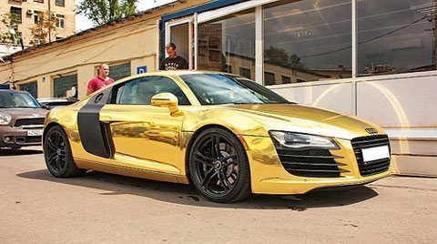 Dù không phải là mẫu R8 mới ra mắt gần đây, nhưng siêu xe của Audi vẫn thu hút mọi ánh nhìn khi khoác trên mình bộ cánh vàng nổi bật.