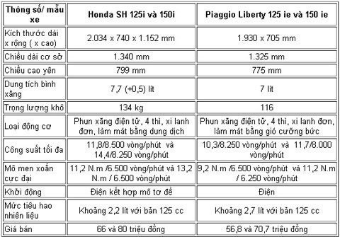 Một số thông số kỹ thuật cơ bản của Honda SH 2012 và Piaggio Liberty ie: