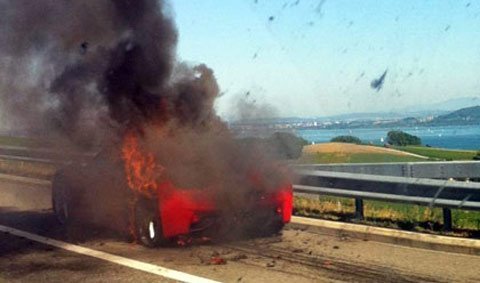 Chiếc Ferrari 458 Italia mới nhất bị cháy trên đường cao tốc A5, thuộc vùng nằm giữa hai thành phố Neuchâtel và Yverdon của Thụy Sĩ có màu đỏ. Vụ cháy chưa rõ nguyên nhân này nâng tổng số xe 458 tàn đời vì bà hỏa lên hơn chục chiếc trên toàn thế giới.