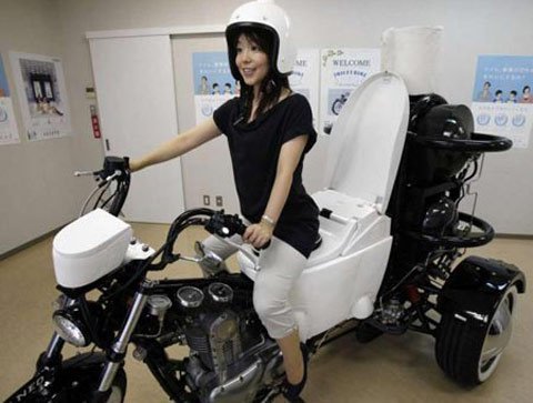 Mẫu xe thân thiện này được trang bị một chiếc ghế toilet đích thực đặt thay thế vị trí ghế đệm thông thường của một chiếc xe máy.
