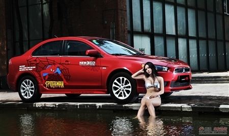 Người đẹp khoe những đường cong nóng bỏng bên xế hộp rực lửa.