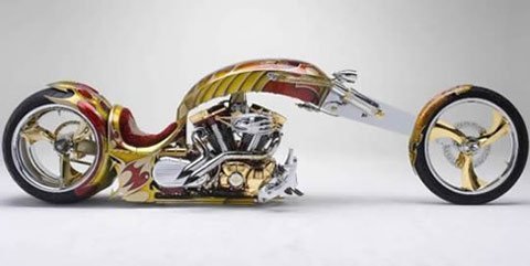 Chiếc chopper dài 3,5m dát vàng 24 cara toàn bộ được gắn động cơ 1700cc, với bánh sau 360mm, yên bọc nhung đỏ thượng hạng. Mẫu chopper sang trọng này đã giành được rất nhiều giải thưởng lớn về thiết kế và sẽ ra mắt người hâm mộ vào tháng 07 năm sau tại New Zealand.