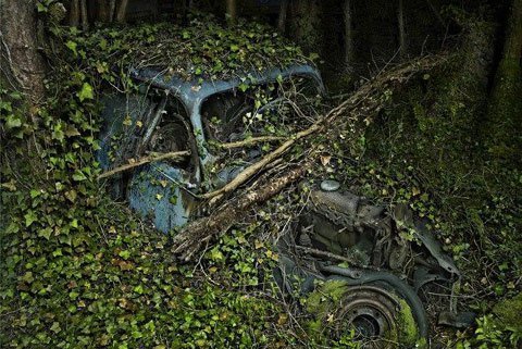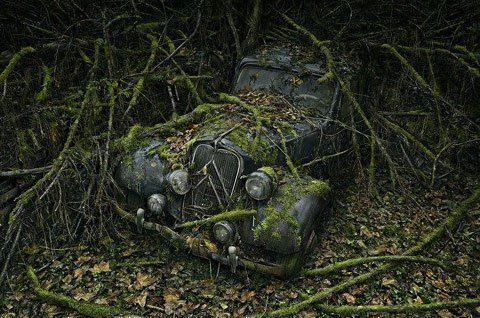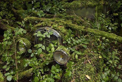 Những chiếc xế cổ này đã nằm quá lâu tại đây. Những rễ cây chằng chịt quấn quanh chứng tỏ những chiếc xe này đã có ít nhất vài chục năm phơi sương gió. Rêu phong phủ kín khiến cho người xem không khỏi chạnh lòng.