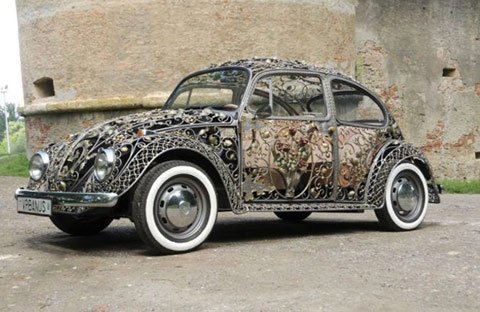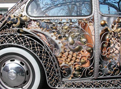 Được biết, 3 người thợ thủ công đã mất khoảng 4 tháng để tân trang theo phong cách đặc biệt này cho chiếc Beetle Volkswagen. Không chỉ đặc biệt vì làm bằng rào sắt, trên bộ khung này còn được dát khoảng 24 carat vàng lá kết hợp với nội thất bọc da khâu tay sang trọng.