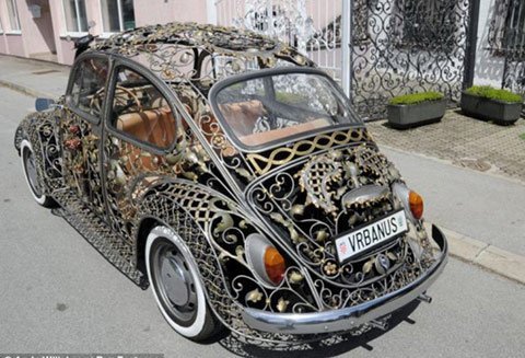 Chiếc Volkswagen Beetle đã sở hữu bộ khung xe được làm hoàn toàn bằng hàng rào sắt.