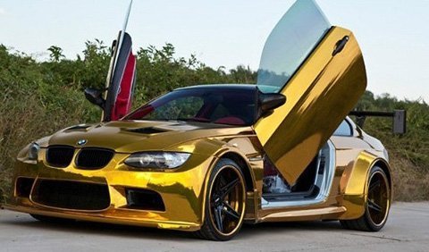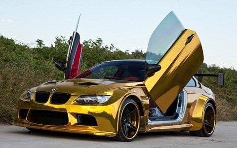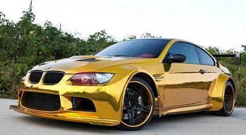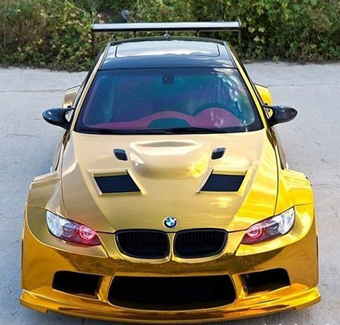 | Điểm nhấn ở chiếc BMW M3 này chính là lớp vỏ mạ vàng bóng loáng bên ngoài |