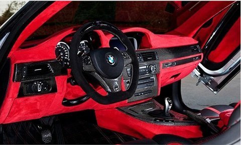 | Bên trong cabin, chiếc M3 được bọc da lộn màu hồng và màu đen, cùng với