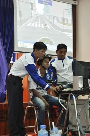 Hướng dẫn viên LXAT của HVN đang phổ biến kiến thức ATGT |