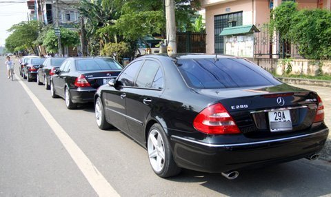 | Dàn xe với cả chục chiếc Mercedes và cả những chiếc Fortuner tham dự đám cưới và đoàn rước dâu của con đại gia đất Sơn Tây. |