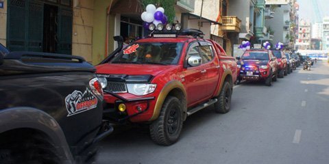 Đoàn rước gồm 32 xe Triton "hầm hố" được trang trí hoa và bóng bay trông rất lạ mắt, bắt đầu đi từ Võng Thị, đi vòng quanh Hà Nội, điểm đến là Trung Tâm Thúy Nga Plaza trên đường Đội Cấn, Hà Nội.