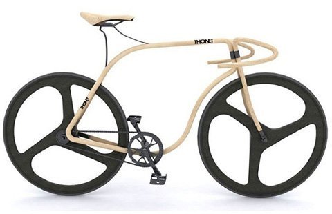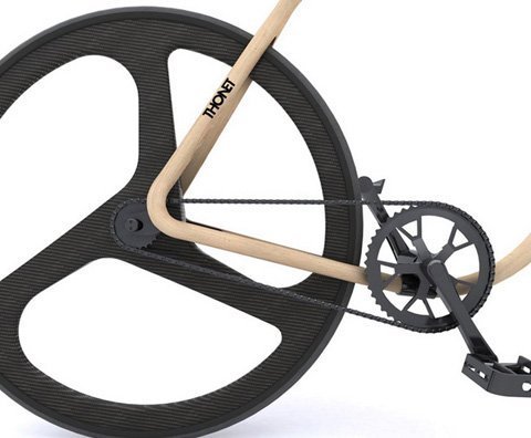 Chiếc xe đạp có một không hai này có kiểu dáng và chất liệu độc đáo. Thân xe được làm bằng gỗ uốn cong một cách nghệ thuật. Đây là tác phẩm do Thonet, một công ty chuyên về đồ nội thất tại London chế tạo.